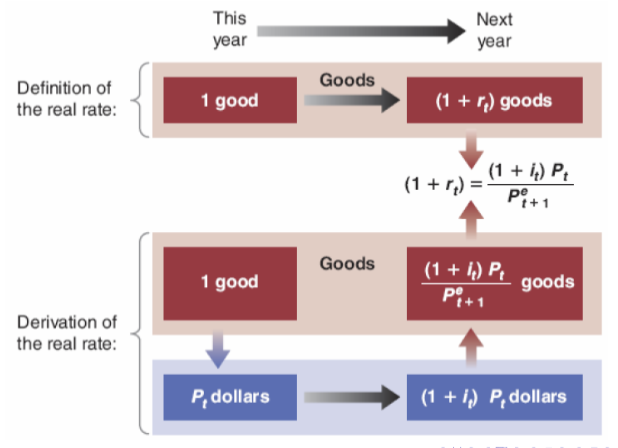 Nominal interest rate () is in terms of dollars, while real interest rate () is the interest rate in terms of a basket of goods. Ex-ante, the difference is expected inflation. We care about this distinction because private sector decisions (like investment) depend on real interest rate.