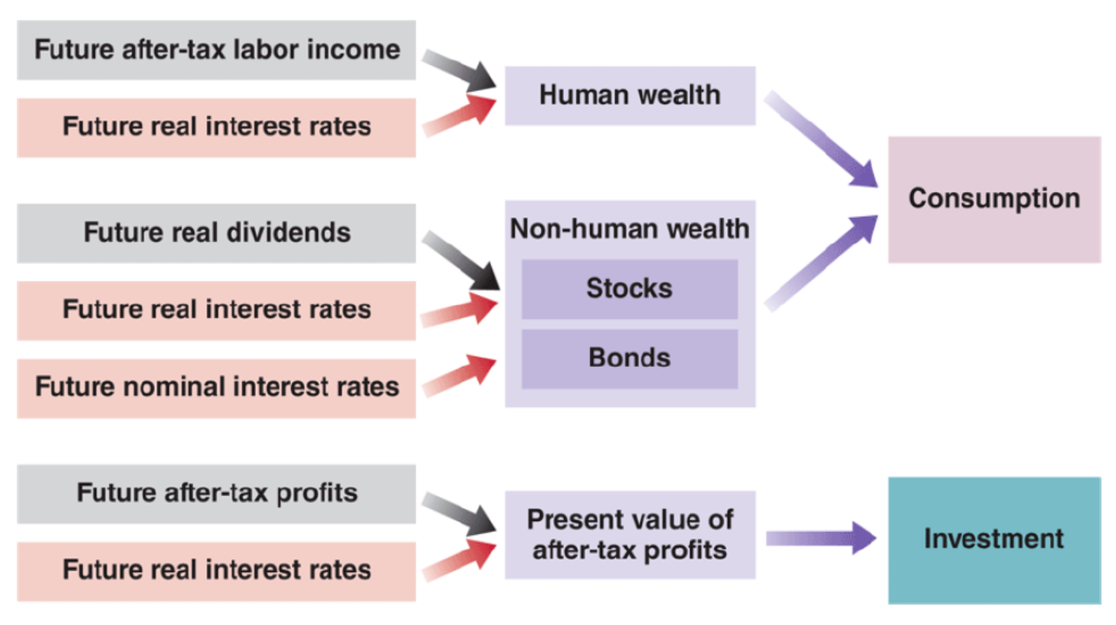 Consumption decisions depend not just on current income but on expected future income/wealth. Two predominant theories: