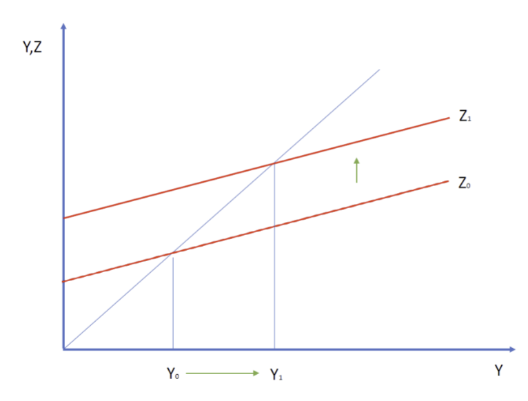 We now capture all combinations of and that are consistent with equilibrium in the goods market. As a result of the interest rate now being a parameter, the curve from Lecture 3 now is more dynamic:
