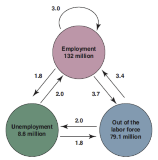 When the unemployment rate is high, workers are worse off in multiple ways. First, employed workers have a higher chance of losing their job, and unemployed workers have a lower chance of finding a job.