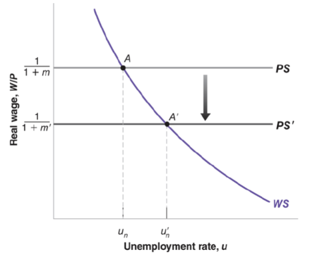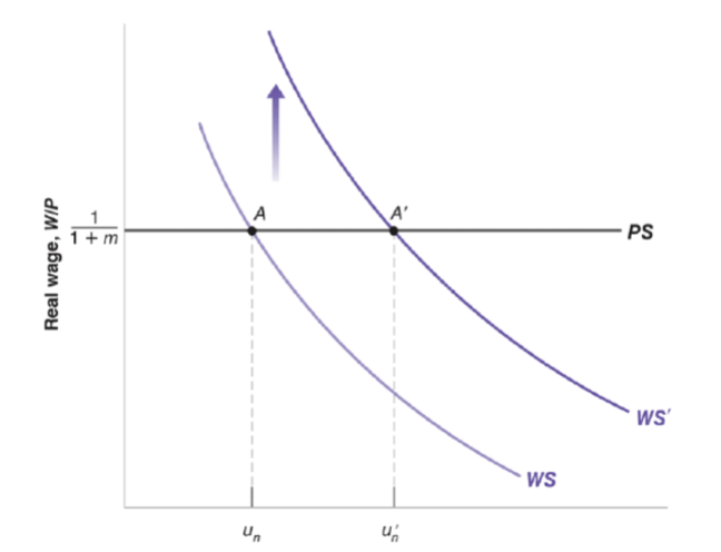 The higher , known as the natural rate of unemployment, the lower the real wage consistent with the wage setting equation.