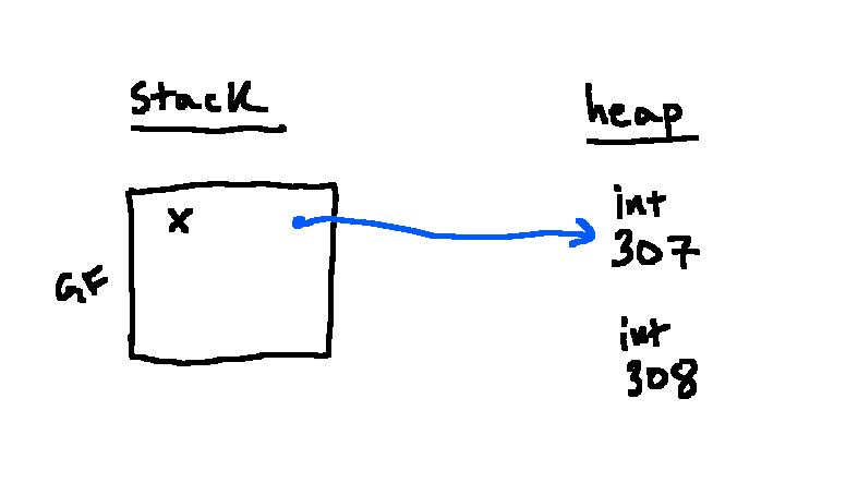 Note that 307 no longer has a reference, so we now “garbage collect” to save memory and remove it from the heap: