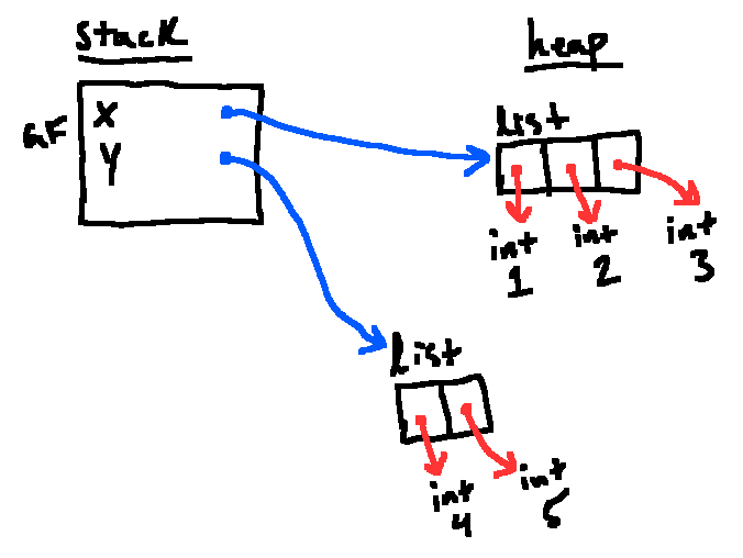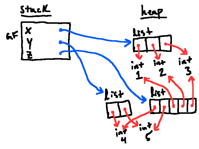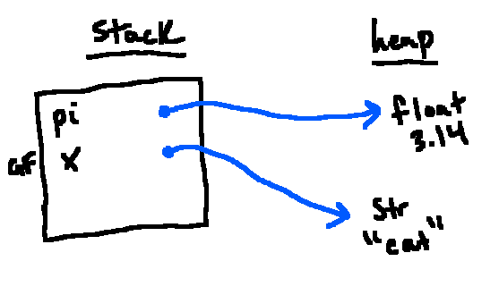 Introduces the idea of an environment diagram as a means of illustrating the stack and heap, as well as associations between variables and objects via arrows. Additionally, we introduced lists and tuples, and the technical quirks associated with them.