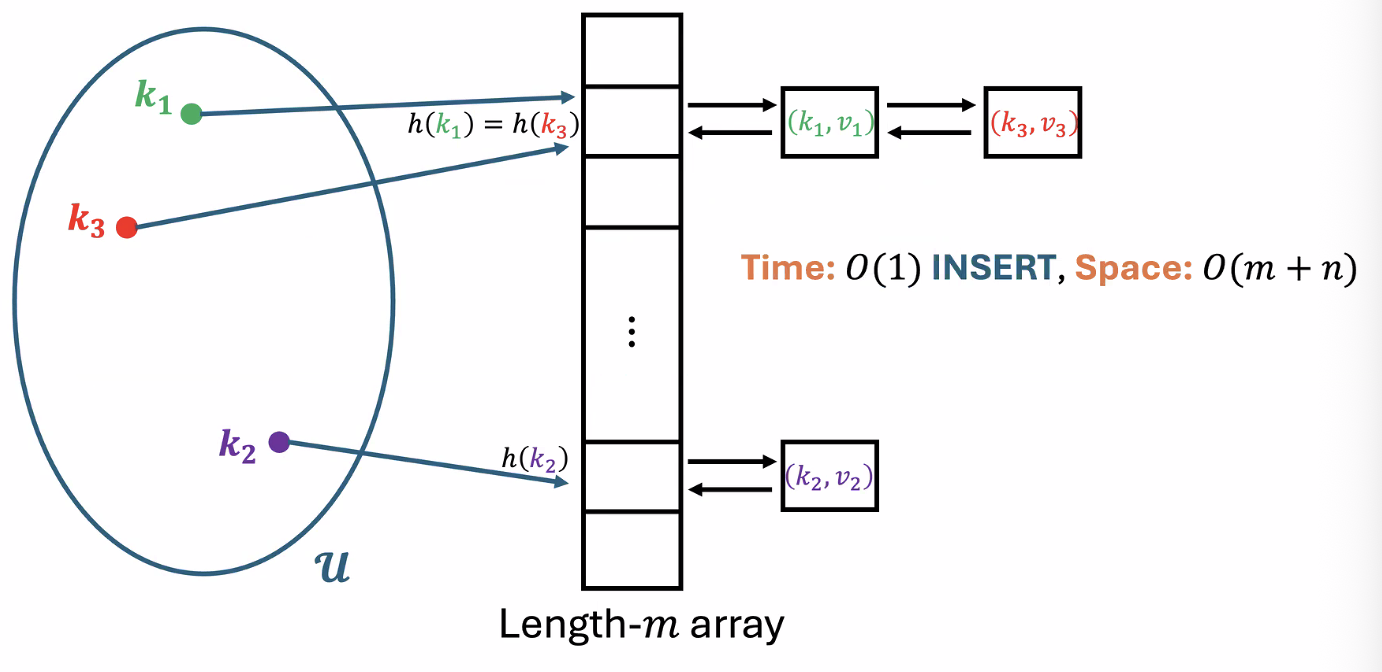 Each operation involves . But how do we handle collisions, given we have keys with the same hash value? Additionally, how do we choose a “good” hash function? What even makes it “good”?